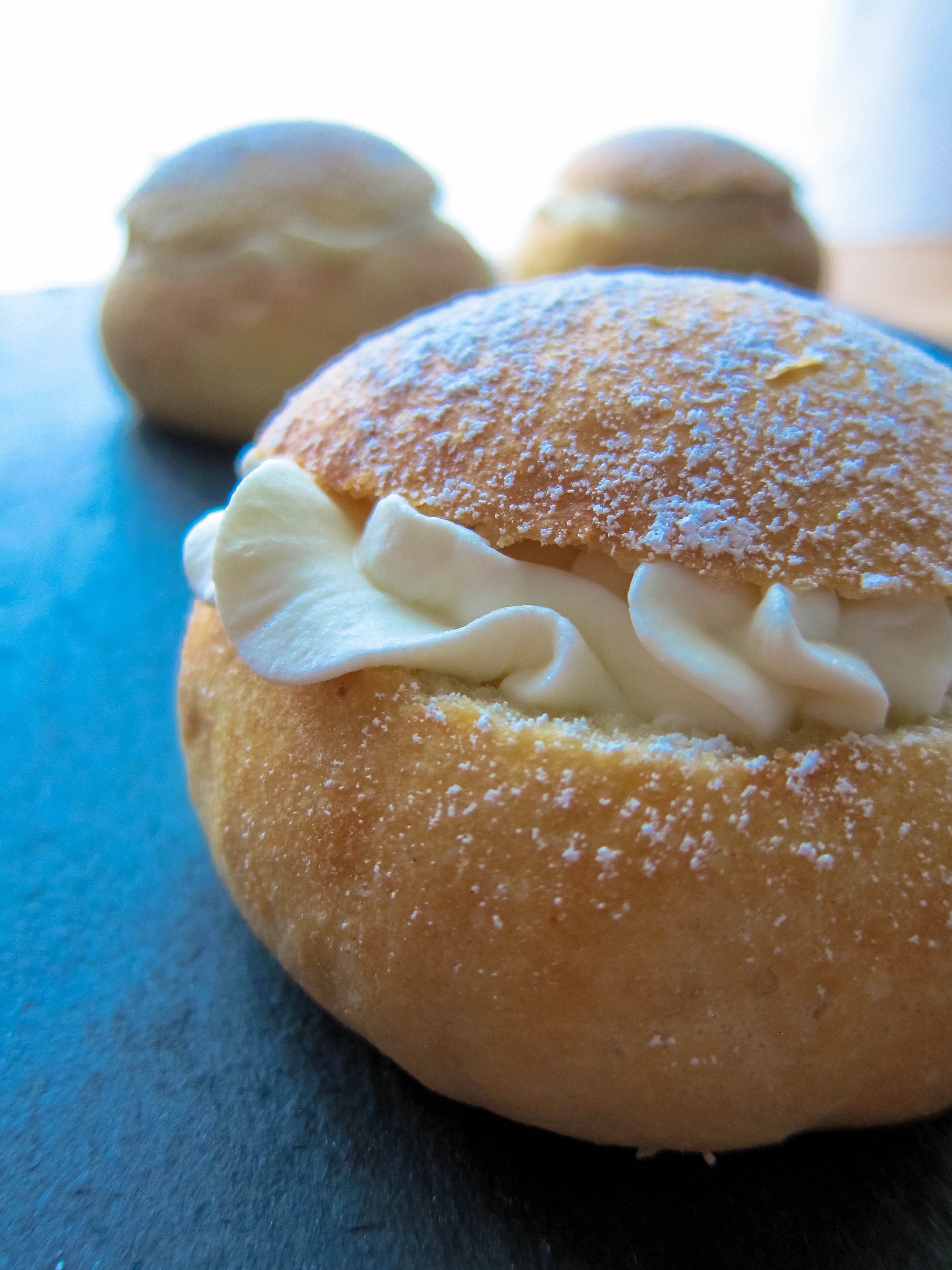 Eine besondere Form des Fastnachtkrapfens aus Schweden musste ich dieses Jahr einfach probieren: die Semla (Mehrzahl: Semlor). Die Kombination aus einem luftigen Hefebrötchen, natürlich mit etwas Kardamom, gefüllt mit Marzipancreme und Sahne klang einfach viel zu verlockend. Resultat: der gute alte Pfannkuchen guckte dieses Jahr bei uns leider in die Röhre, denn die Schweden haben es mit ihrer Semla ja mal wieder wirklich so richtig, richtig lecker zu ihrem Fetten Dienstag! Nachmachen, aber schnell!